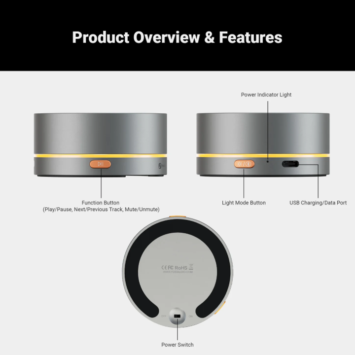 Lighting Modes: Constant Light Mode/Light Off Mode/Auto-Off after 5 Seconds of Inactivity/Spectrum Cycling